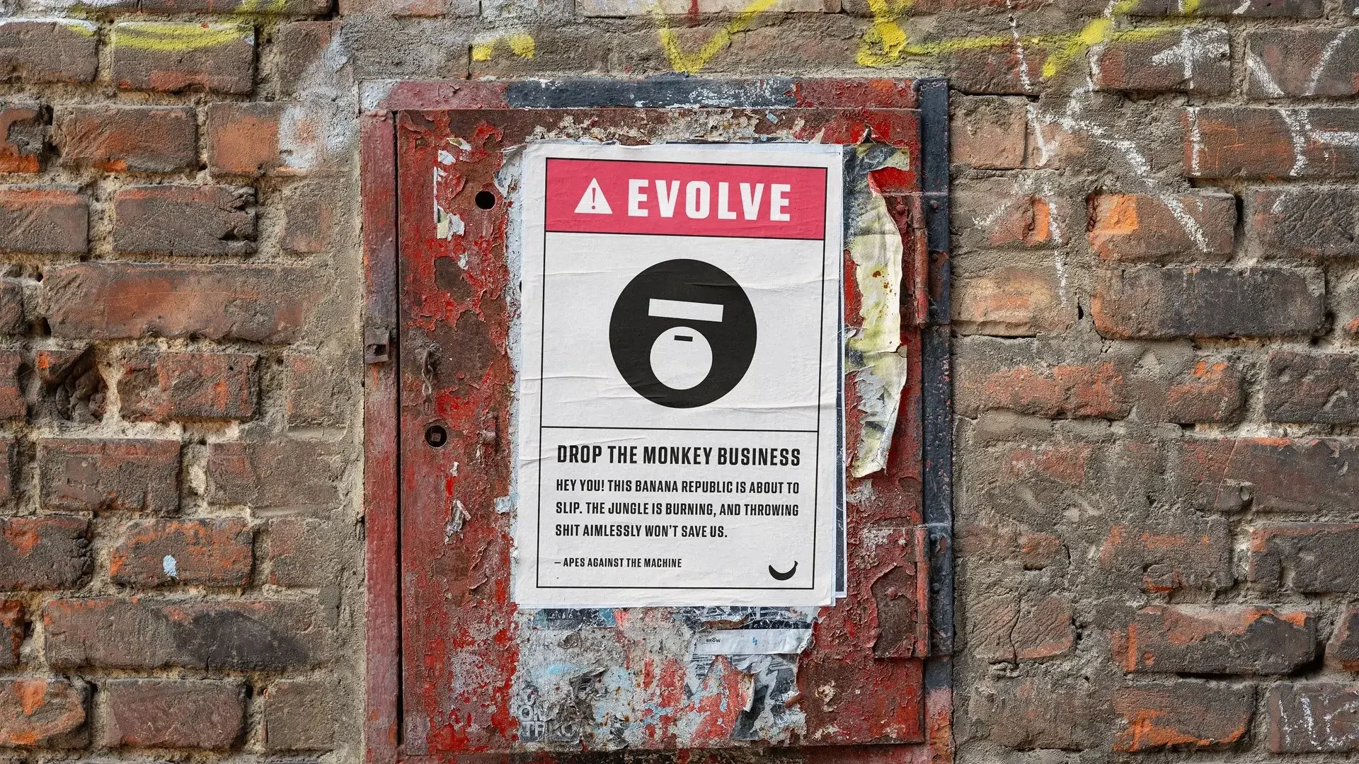 Some causes whisper. This one yells through a megaphone in an ape mask.We built everything from scratch: name, voice, visuals, mascot, tone, and the world it lives in. The goal? Create a movement that feels like a mix of street-art, retro edu-films and wartime propaganda — but flipped for something good.